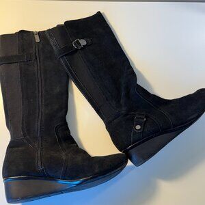 Anne Klein Sport Black Suede wedge heel Knee high boots 8M