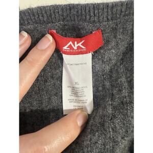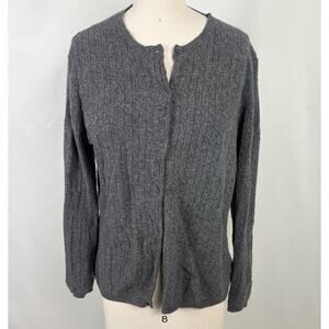 Anne Klein Sport Gray Cable Knit Cardigan Sweater XL Wool Cashmere Staple 80's