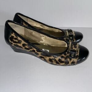 Anne Klein Sport Leopard Print Wedge shoes Women’s 6.5 M Gold Toned Buckle