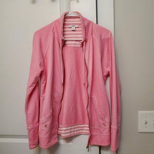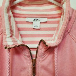 Anne Klein Sport Pink Long Sleeve Zip Front Cotton Blend Jacket, Size Large