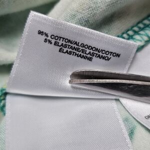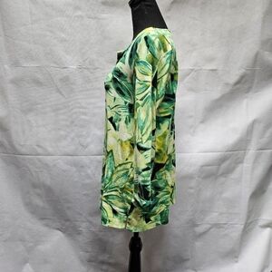 Soft t-shirt feel, leave pattern, small slits up sides. Size S