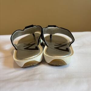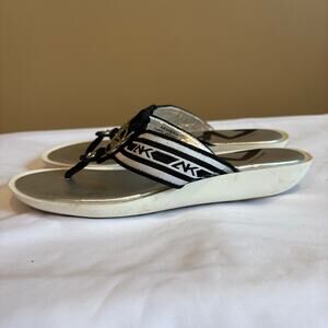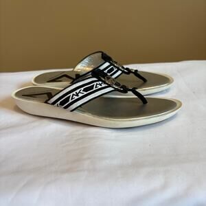 Anne Klein Sport Womens 7M Black White Striped Thong Sandals Flip Flops Comfort