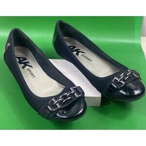 The Anne Klein Sport Women's 8M Alexa Slip-On Flats in black are a stylish and versatile option for various occasions. With a solid pattern and round toe shape, these slip-on flats are perfect for travel, weddings, parties, casual outings, workwear, and business meetings. The scuff on the left toe adds a unique touch to these man-made flats, making them perfect for those who want to showcase their individuality in their footwear choice. The slip-on style and comfortable shoe width make these flats convenient and comfortable for all-day wear.