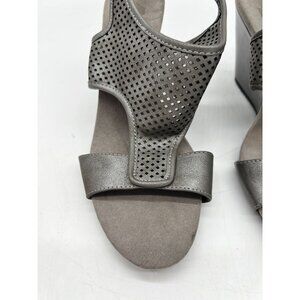 Anne Klein Sport Women's Casual Pewter Wedge Sandal Sling Back Size 7 M Gray