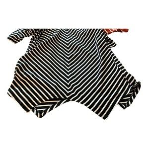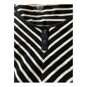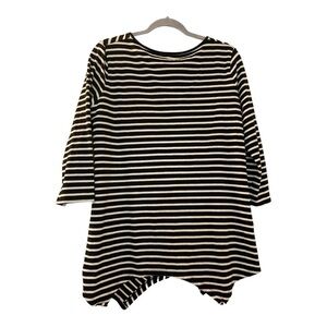 Anne Klein Sport tunic top, cotton, L, black and white stripe, assymetrical.