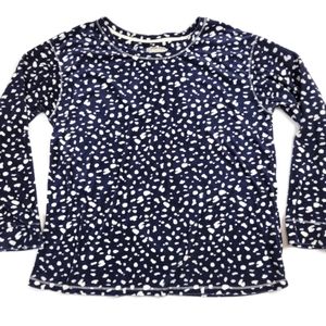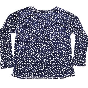 This adorable Anne Klein pajama top is midnight blue with white spots. It's gently worn and in a size small.