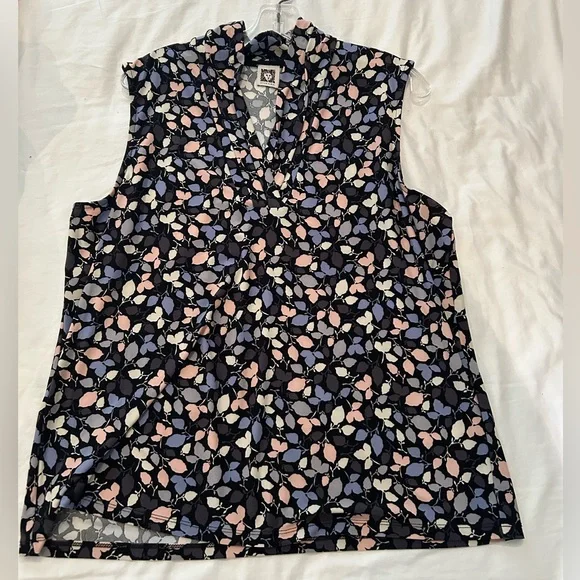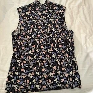 This stylish sleeveless top features a vibrant floral pattern in black, pink, and blue. Perfect for any occasion, it offers a comfortable and chic look.