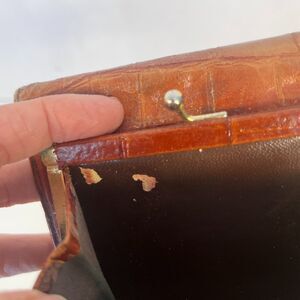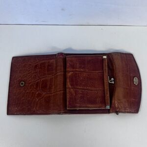Anne Klein St Thomas Faux Croc Leather Bi Fold Wallet Kiss Clasp Change Purse