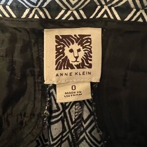 Anne Klein Stretch Pants black white diamond pattern- Size 0. Has front pockets and faux back pockets. Front zip and hook closure. 30” waist, 25” inseam. Like new! Smoke free home.