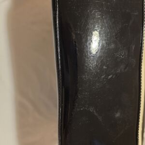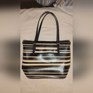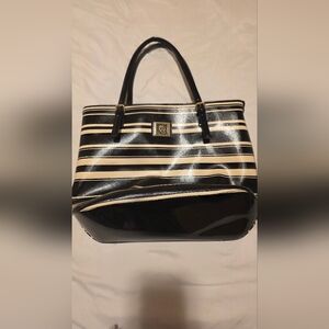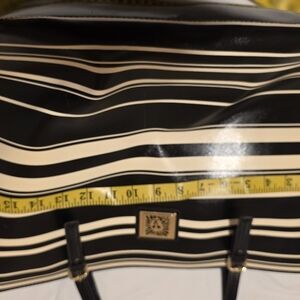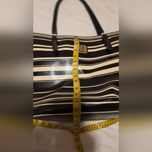 Anne Klein Striped Black and Cream Tote Bag Multiple Pockets Scratch Handle Wear