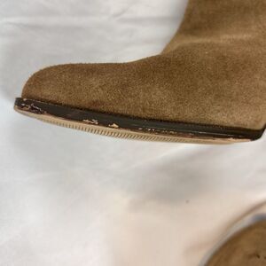 Anne Klein Suede Leather Ankle Booties Tan Brown Block Heel Slip On Womens 8.5 M