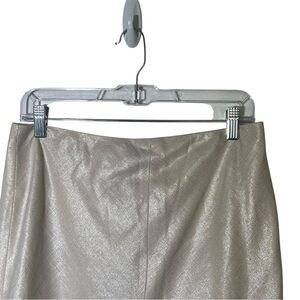 Beige and metallic silver skirt with a side zip closure. Preowned but in good condition.