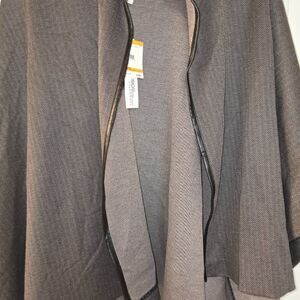 Anne Klein Sweater Cape Poncho Black/Khaki With Tags