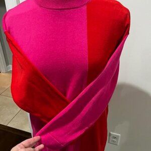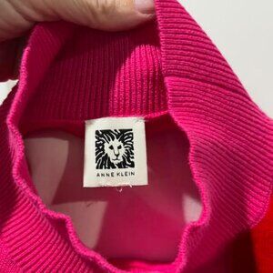 Pre-owned in excellent condition **Size Tag is Missing - Wear oversized as Medium or regular fit Large - SEE MEASUREMENTS BELOW- Anne Klein Mock Turtleneck Sweater in Pink and Red. This sweater is so soft and comfortable. See pictures for full details of sweater. Made with 60% cotton and 40% acrylic. Measures laying flat at 24" pit to pit, 25.5" length, off the shoulder sleeve length 18". Pair with jeans, skirt or slacks.