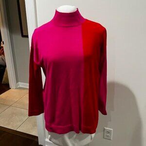 #Anne Klein #Sweater #Mock Turtleneck #Pink #Red #Womens #Cotton #Soft #Comfy #Comfortable #Cozy #Classic #Whimsical #Feminine #Oversized #Casual #Business Casual #Festival #Office #Career #Colorful #Colorblock #Coastal Grandma #Electric Grandpa #Cottagecore #Cabincore