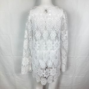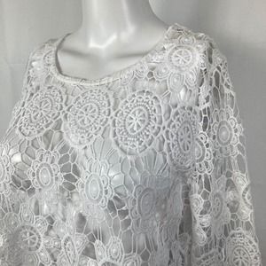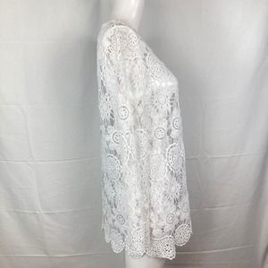 Anne Klein Womens White Lace Round Neck Tunic Size Small