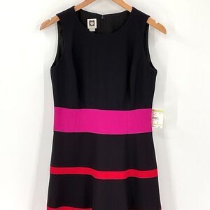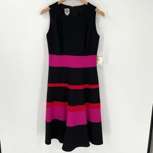 Anne Klein Swing Skirt Fit & Flare Sleeveless Dress Black Color Block Women 4