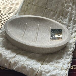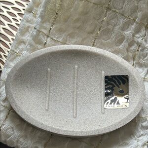 Stylish Anne Klein soap dish. Textured beige finish. Perfect for modern bathrooms.