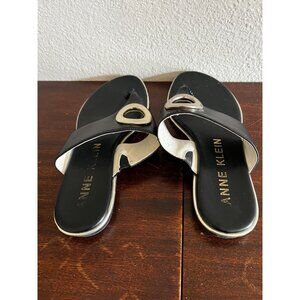 Anne Klein Thong Sandals Womens 7.5M Black Silver Leather Slip On