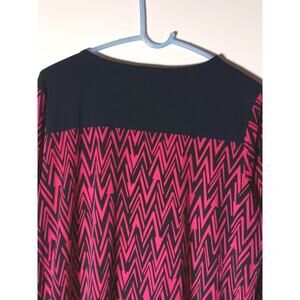 Anne Klein Top Pink Blue Geometric Chevron Women Blouse 3/4 Sleeve XL