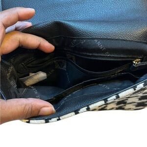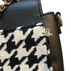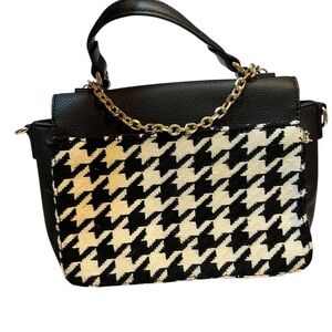 Anne Klein Top Handle Satchel W/Swag Chain, Black-White Houndstooth w/Black.