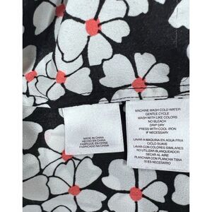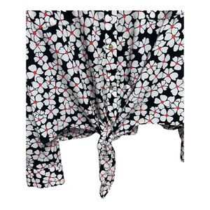 Anne Klein Top Womens Tie Front Black White Floral Gold Accent Buttons Size XL