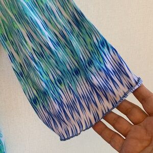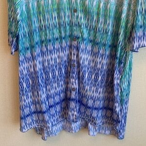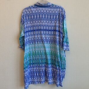 Pre-love in brand-new condition and adorable, AK gorgeous shades of blue button up tunic/cover-up with three-quarter length sleeves, two side pockets and two side vents. Measurements and fabric info in pictures.
