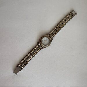 Anne Klein Two Tone Quartz Analog Ladies Wrist Watch Vintage White Face Silver Gold Roman Numerals