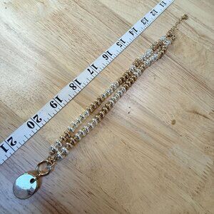 Anne Klein Two-Tone Beaded Pendant Necklace With Disc Charm 16" + 3" Extender