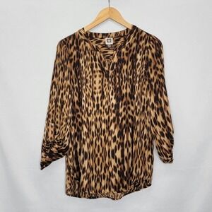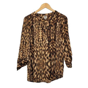 Anne Klein V Neck Leopard 3/4 sleeves Blouse