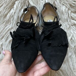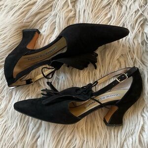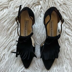 Anne Klein Vintage Black Suede Leather Fringe Tassel Pointed Toe Heels Size 7N