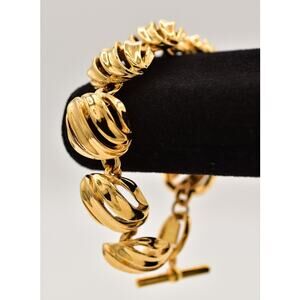 Anne Klein Vintage Chunky Chain Bracelet Shiny Gold Linked Signed 90s 1990s Bin7