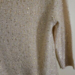 Anne Klein Vintage Golden Beige Sequined 3/4 Sleeve Holiday Sweater Size S