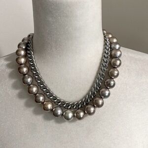 Anne Klein Vintage Jumbo Silver Pearls Beads Chain Runway Statement Necklace