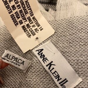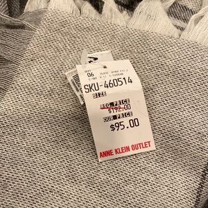 Anne Klein Vintage Plaid Fringe 100% Baby Alpaca Scarf in Black and Gray
