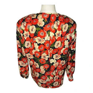 Anne Klein Vintage Silk Blouse Red Floral Print Petite Medium