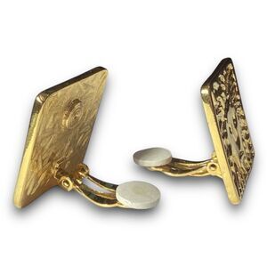 Anne Klein Vintage Square Lion Head Gold Toned Clip On Earrings