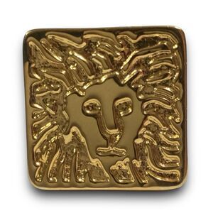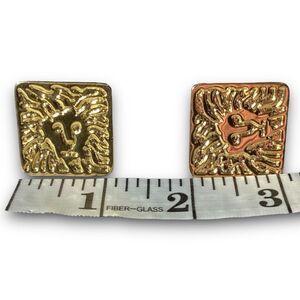 Anne Klein Vintage Square Lion Head Gold Toned Clip On Earrings 1” x 1”