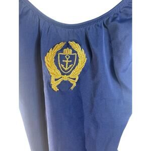 Anne Klein Vintage Swimsuit Navy Nautical Quiet Luxury Cape Cod Gold Embroidered