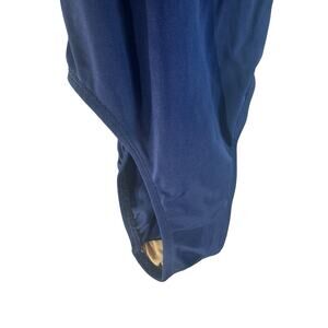 The Anne Klein Vintage Swimsuit in Navy Nautical Quiet Luxury is a one-piece designer swimsuit featuring a tank top style with embroidered accents, made of Lycra/Spandex material. The swim brief bottoms are lined and in size 8, offering a touch of vintage elegance to your summer wardrobe. This sophisticated swimsuit from Anne Klein is perfect for a day at the beach or lounging by the pool, combining classic style with high-quality construction.