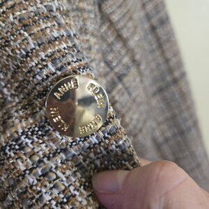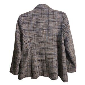 Anne Klein Vintage Tan Gold Plaid Open Front Double-breasted Tweed Blazer Size M
