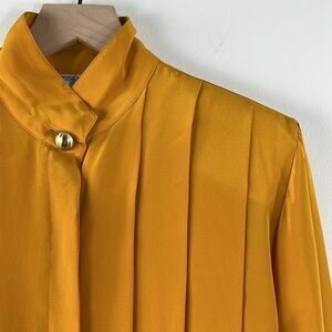 Anne Klein Vintage Yellow Pleated Polyester Long Sleeve Blouse Top Womens Size 6