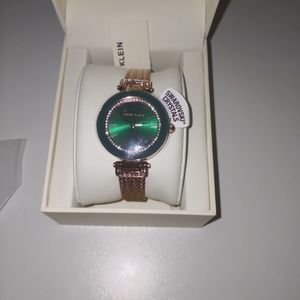 Anne Klein Sunray Dial With Premium Swarovski Crystals Watch. NWT, New with box, and lifetime warranty. I absolutely love this watch, I think it's beautiful with the dark hunter green face with the crystals and the rose gold to offset the whole piece. BEAUTIFUL!