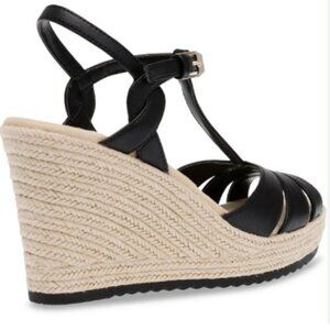 Anne Klein Waves Raffia Dressy Wedge Sandals In Black