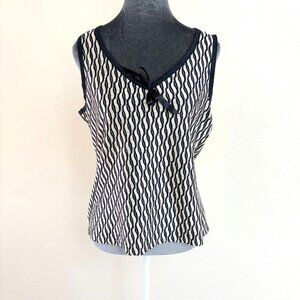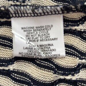 Anne Klein - Wavy Pattern Shell Sweater with Ribbon Trim - Cream/Navy - Size M
