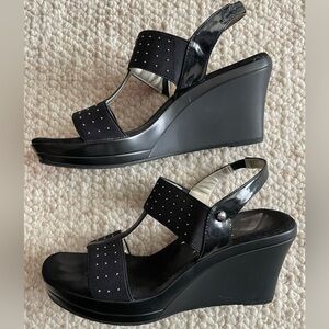 Anne Klein Wedge Sandal Silver Stud Embellished