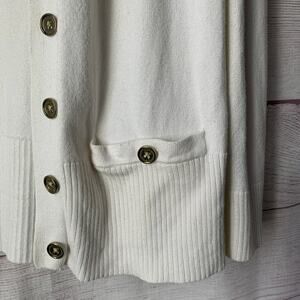 Anne Klein White Cardigan Sweater Gold Button Front Pockets Size Small