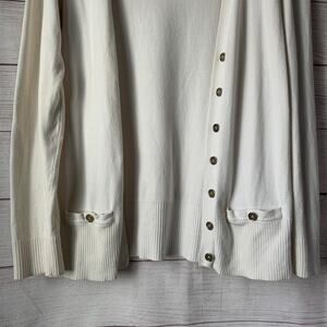 Anne Klein White Cardigan Sweater Gold Button Front Pockets Size Small