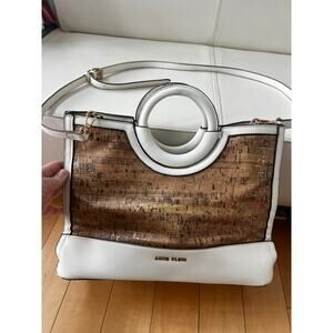 Anne Klein White & Corkrounded top handle satchel shoulder bag purse