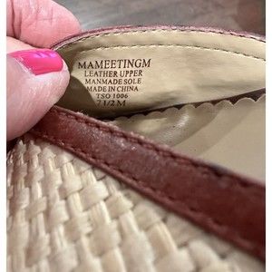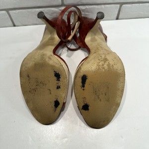 Anne Klein Women 7. 5M Straw Weave Open Toe Ankle Strap Heels Maroon Leather